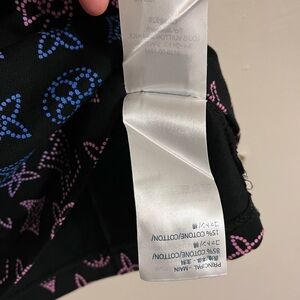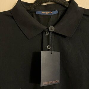 Discover elegance with this Louis Vuitton polo. Black base with purple accents. Iconic pattern design. Perfect for any occasion.