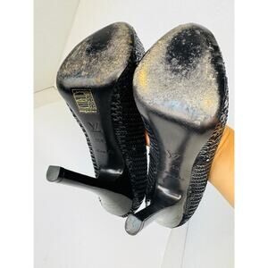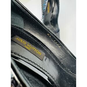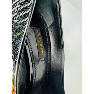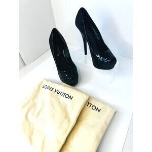 Louis Vuitton Black leather Sequin Peep Toe Platform Pumps Heels Size 35.5