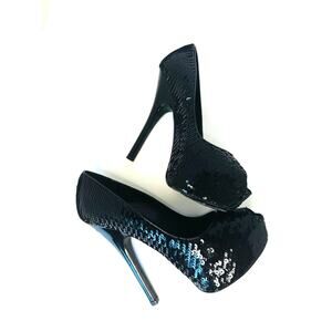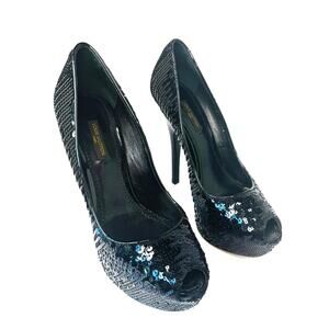 Step into glamour with these Louis Vuitton black sequin peep toe pumps, crafted with shimmering black sequins for an elegant, high-impact look. These stunning heels feature a tall stiletto heel, a hidden platform for added comfort, and a sleek open toe silhouette—perfect for evening wear or special occasions.