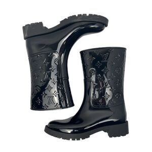 Louis Vuitton Black Mid-Calf Rain Boots Monogram Pattern Women’s Size 39