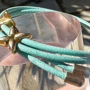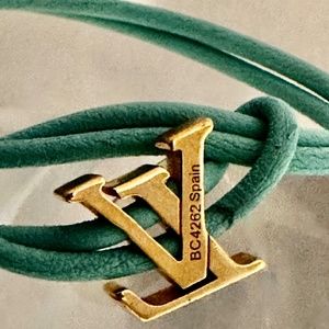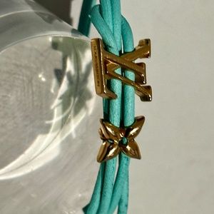 LV Bloom Bracelet has a smooth blue leather double strap design