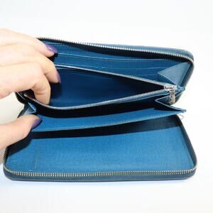 Authentic Louis Vuitton long Zippy wallet in striking blue Epi leather. Interior is in excellent condition with smooth leather compartments, card slots, and a zip coin pocket. Exterior shows corner wear and the zipper pull has been replaced (see photos). Fully functional with clean zip closure. Priced to reflect condition—perfect for everyday use or collectors seeking a rare colorway. Classic LV quality and durability.