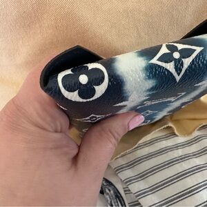 Elegant Louis Vuitton clutch in a striking blue monogram design. Perfect for adding a touch of luxury to any outfit.