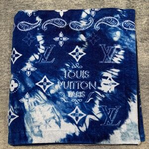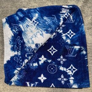 Louis Vuitton Blue White Bandana Monogram Logo Cotton Bath Beach Towel MP3347