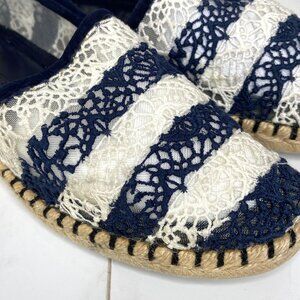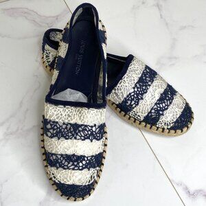 Louis Vuitton Blue & White Striped Crochet Lace Flat SEA BREEZE Espadrilles 36.5