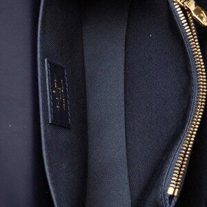 The exterior is pristine throughout. The leather trim and handle remain clean with no wear. The hardware is bright and shiny. The interior is clean and in excellent condition.