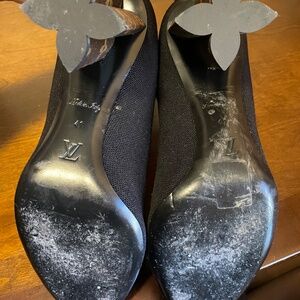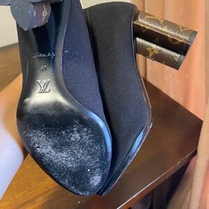Louis Vuitton Booties with box. Heel is brown Louis Vuitton print.