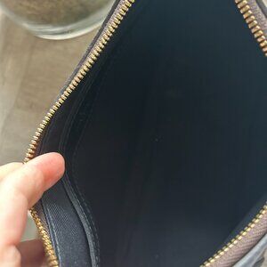There are some markings on the corner, as seen in the picture, and a very small amount of wear on the back loop.