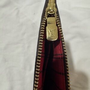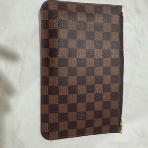 Stylish mini bag with iconic checkered pattern. Features a sleek wrist strap for easy carrying.