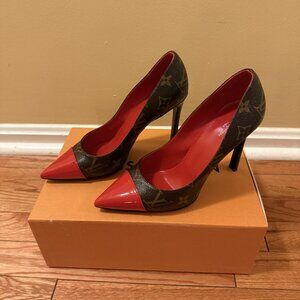Louis Vuitton Brown Coated Canvas And Patent Leather Classic Pumps
