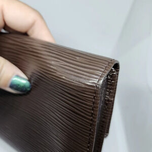 In pre-loved condition, exterior leather looks great, minimal wear on inside. Left side foldover has an indention, pictured. Rare color!