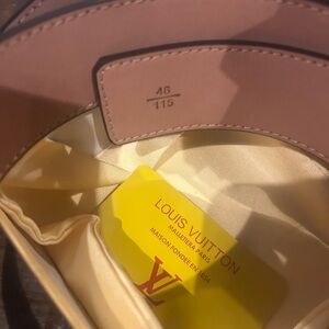 Elegant Louis Vuitton belt featuring iconic monogram design. Accentuated with a gold LV buckle. Ideal for a sophisticated touch.