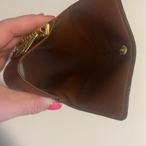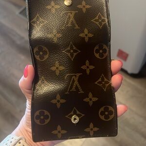 This Louis Vuitton key holder showcases the iconic monogram pattern on a rich brown canvas, offering a blend of luxury and practicality. Its compact design makes it a perfect accessory for organizing your keys with style. The classic LV motifs add a timeless touch to your everyday essentials.