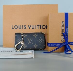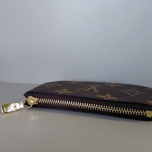 Louis Vuitton key pouch with signature monogram. Features deep brown with gold details.