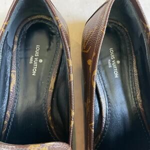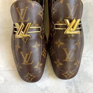 Louis Vuitton Brown Monogram Loafers with Gold Accent