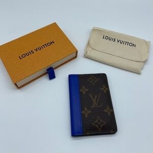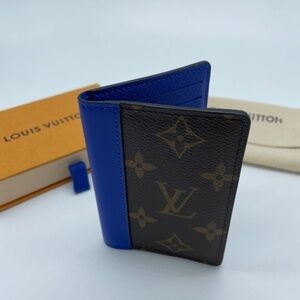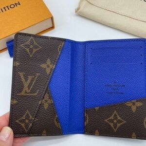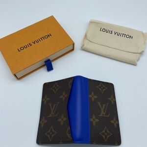 Louis Vuitton Brown Monogram Macassar Pocket Organizer Wallet Blue, New w/o tags