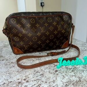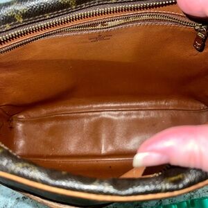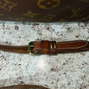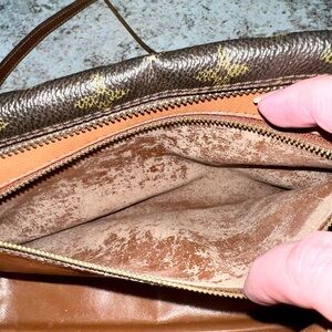 This bag has a lot of patina and has been well loved. This can use some TLC. Still in wearable condition. There is some verdigris on the side hardware. There is peeling in two pockets. Very minimal. I bought this to wear but I wanted the strap to be a lot longer because I’m tall. Previous owner also had dryer sheets in it but it can be aired out. It never bothered me.