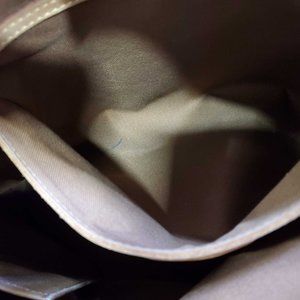 Elegant Louis Vuitton tote with iconic monogram pattern. Features dual tan handles. Perfect for everyday use.