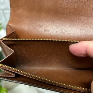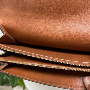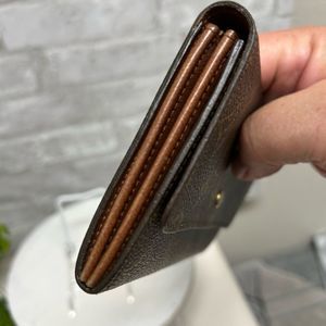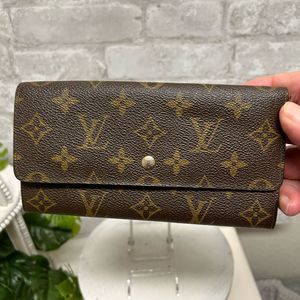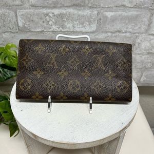 Elegant Louis Vuitton wallet. Classic monogram design. Secure snap closure.