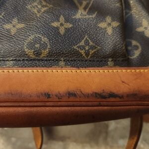 This Louis Vuitton backpack showcases the iconic monogram canvas in a rich brown hue, complemented by luxurious leather trim. Its classic design features a drawstring closure and adjustable straps, embodying both style and practicality.