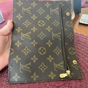 This is an authentic Louis Vuitton Randonnée pouch in the classic monogram canvas. Originally part of the Louis Vuitton Randonnée backpack, this versatile accessory can also be used as a clutch, organizer, or stand alone pouch. My son has one that he uses his for school.