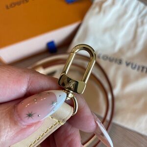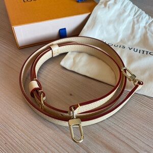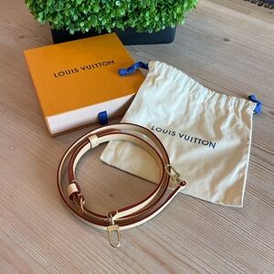NEW AUTHENTIC Louis Vuitton vachetta leather strap. PRISTINE, unused condition. Came with my new LV Ellipse PM. Can be used as a crossbody or shoulder strap. Just over 44 inches in length (clasp to clasp) at its longest setting. Comes box and dust bag.