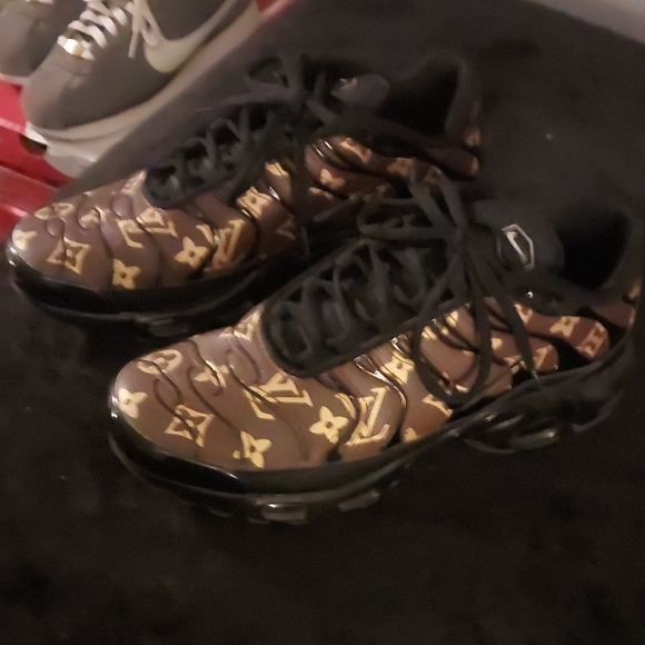 Stylish Louis Vuitton sneakers. Features iconic monogram pattern. Comfortable and trendy design.