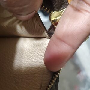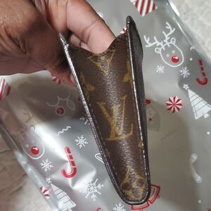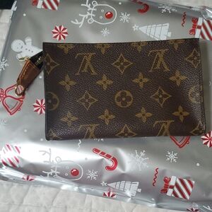 Stylish Louis Vuitton pouch with classic monogram. Rich brown with gold accents.