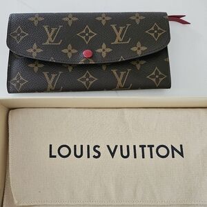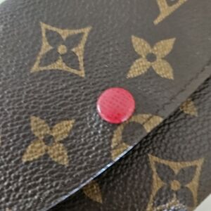 Chic Louis Vuitton wallet with iconic monogram design. Features a stylish red button closure. Red interior. very good condition. comes with dustbag and box.