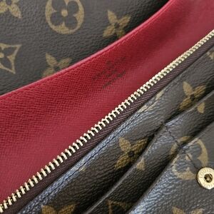 Louis Vuitton Brown and Gold Monogram Sarah Emily Long Wallet Red Button