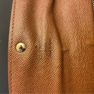 Stylish wallet with iconic monogram design. Features secure snap closure. Ideal for daily use. Has some damage on both sides, but still has some good use left in it. Authentic, number shown in the inside. Zipper and snap works great!
