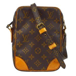 Elegant Louis Vuitton crossbody bag. Features iconic monogram pattern. Adjustable strap for comfort.