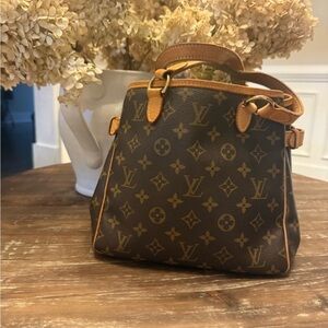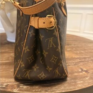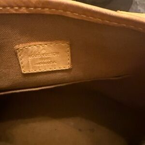 Elegant Louis Vuitton tote with signature monogram. Rich brown and tan leather accents. No callouts on the outside . The inside needs to be cleaned a bit .