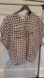 Chic Louis Vuitton blouse with a striking geometric design. Features a blend of brown and white tones. Ideal for stylish outings.