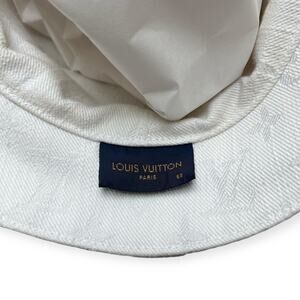 Description: Collector's piece, rare and sold out, reversible monogram watercolor bucket hat, interior is white with LV logo embroidered, LV engraved eyelets, 100% cotton, size 58, comes with original box (slight wear on corners)