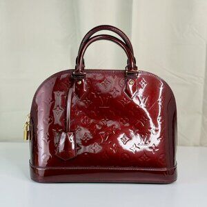 Louis Vuitton Burgundy Alma PM Bag with Classic Monogram Pattern