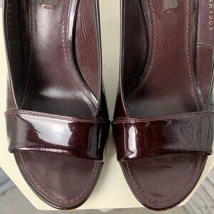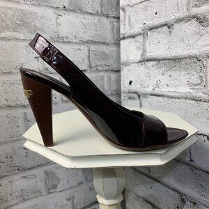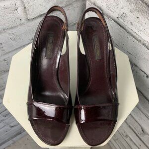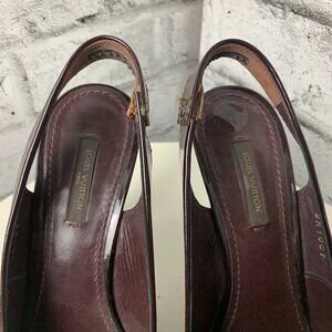 Louis Vuitton Burgundy Patent Leather Sling Back Open Peep Toe Pump