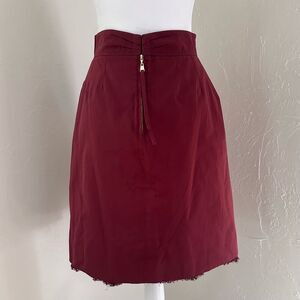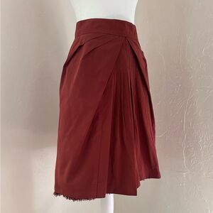 Gorgeous Louis Vuitton burgundy red skirt with pleating detail at front, and lined with a raw-edge lace embellished underlayer. Made in France. Size 38 FR, 6 US. Gently used.