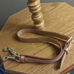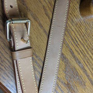 The pre-owner has changed the red long strap to this leather strap, and it has a few light stains. It is authentic LV strap.