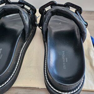 Louis Vuitton Calfskin Embossed Monogram Sunset Flat Comfort Mule 37 Black