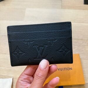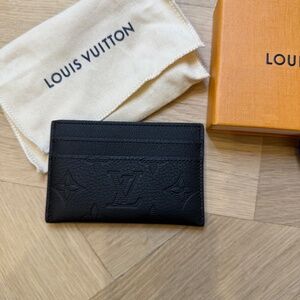 Louis Vuitton Calfskin Monogram Shadow Double Card Holder Black LIKE NEW MINT