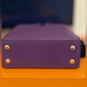 Chic purple bag ostrich leather. This bag is a collectors must. Iconic design for style lovers.