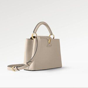 Fashioned from full-grain Taurillon leather, the now-classic Capucines BB handbag displays a host of House signatures: leather-wrapped LV Initials, jewel-like handle mounts inspired by historic trunks, and a distinctive flap with a Monogram Flower motif. Timelessly elegant, this charming model can be carried by hand or worn cross-body on its detachable strap. First launched in 2013, the Capucines is named for the Parisian street where Louis Vuitton first opened shop, in 1854.