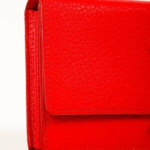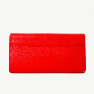 The Capucines continental wallet from Louis Vuitton is crafted with a supple Taurillon leather in a Rubis red, and features silver-tone metal pieces, a leather-covered LV signature, a front flap secured with a snap closure, a tonal cowhide leather lining, 12 card slots, 1 large zipped coin pocket, 2 large gusseted compartments, and 1 inside flat pocket.