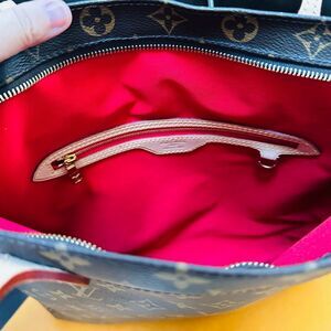 Bag used a couple of times only. Pouch on sale separately. No odor. Great work bag and travel bag holds 14 inch laptop. Very comfortable under your arm. Great work and travel bag. It features a top zipper securing your items during travel. Don’t miss it!