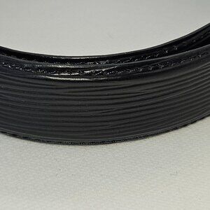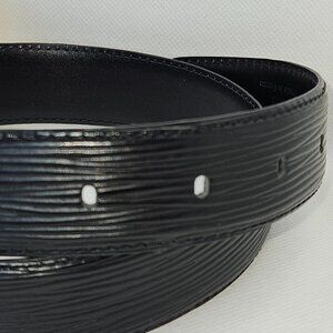This pre-owned Louis Vuitton Epi Leather Belt is in excellent condition, with no significant signs of wear. The polished brass hardware adds a touch of luxury and the adjustable width offers versatility. Crafted from black Epi leather with a gold-plated buckle, this piece exudes timeless sophistication. Comes with original box. Made in France.