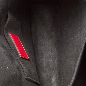 The exterior is clean and beautiful but has faint scuffing. The leather trim has light creasing and scuffing. The strap has some marks and creasing The interior shows rubbing and light soiling.