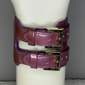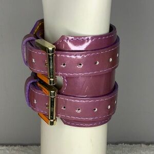 This Louis Vuitton Charlton Double Wrap Bracelet in Purple Monogram Vernis Leather is in excellent preowned condition.