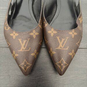Louis Vuitton Cherie Slingback Flats Brown Monogram Canvas Pointed