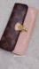 Chic Louis Vuitton clutch with pink patent and brown monogram design. Perfect for adding luxury to any outfit.